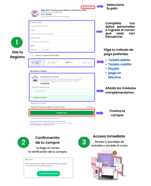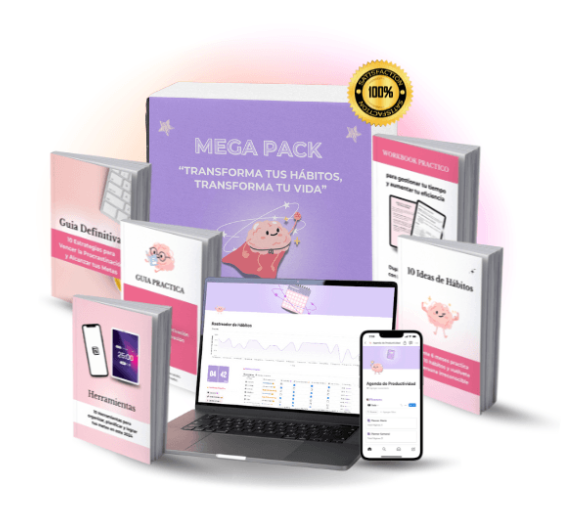 Con el mega pack estarás paso a paso, con ejercicios prácticos aplicables a tu vida diaria. Así garantizamos que desarrollarás hábitos sólidos y efectivos que transformarán todas las áreas de tu vida, ayudándote a vivir con propósito, equilibrio y claridad.